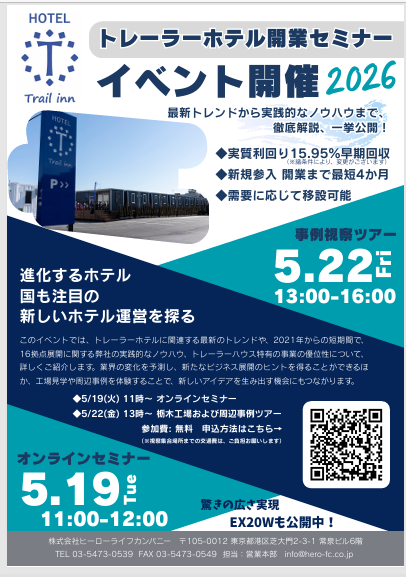 トレーラーホテル開業セミナー 開催のご案内